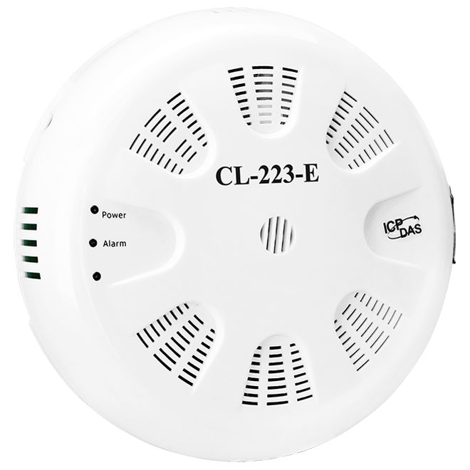 Модуль для измерения температуры / влажности / точки росы и концентрации CO/CO2 и мелкодисперсных частиц PM1/PM2.5/PM10 / RS485/Ethernet / протоколы DCON / Modbus RTU/TCP / MQTT / выход реле 30VDC@16A/250VAC@16A / белый корпус / 12-48VDC-in / PoE — ICP DAS CL-223-E