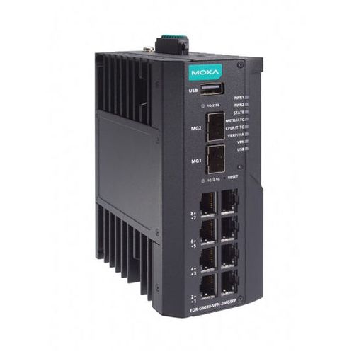 Промышленный маршрутизатор безопасности / 8 портов 10/100/1000 BaseT (X) + 2 Gigabit Ethernet SFP / Firewall/NAT/VPN / –40...+75 С — MOXA EDR-G9010-VPN-2MGSFP-HV-T