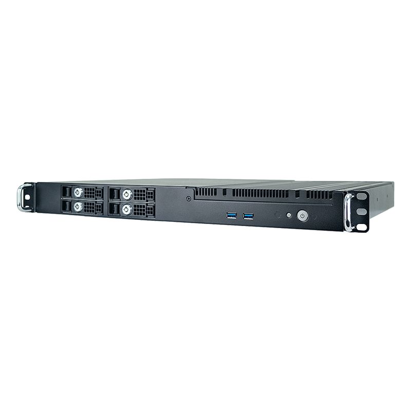 Безвентиляторный промышленный сервер 1U / Q670 / Intel Core i3-12100TE 2.1-4.0ГГц / 8Гб DDR4 SO-DIMM LP / 256Гб SSD 2.5" TLC (–40...+85°C) - 2шт. / RAID 0/1/5/10 / VGA / HDMI / 2xDP / 2x2.5Гбит LAN / 2xCOM / 6xUSB / аудио / M.2 2280 M / M.2 2230 E.1xPCIe-16 / адаптер AC/DC 120Вт — iROBO-1000-10i4RF-G5