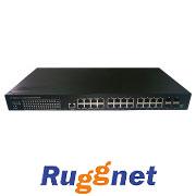Стоечный гигабитный промышленный 28-портовый коммутатор уровня L2 (24 гигабитных порта RJ-45 и 4 SFP-порта 100FX или 1000BaseF (SX/LX/LH)) — Ruggnet RIM-528