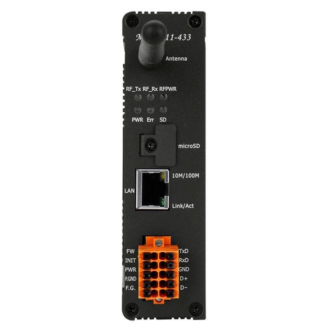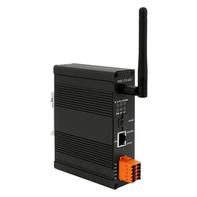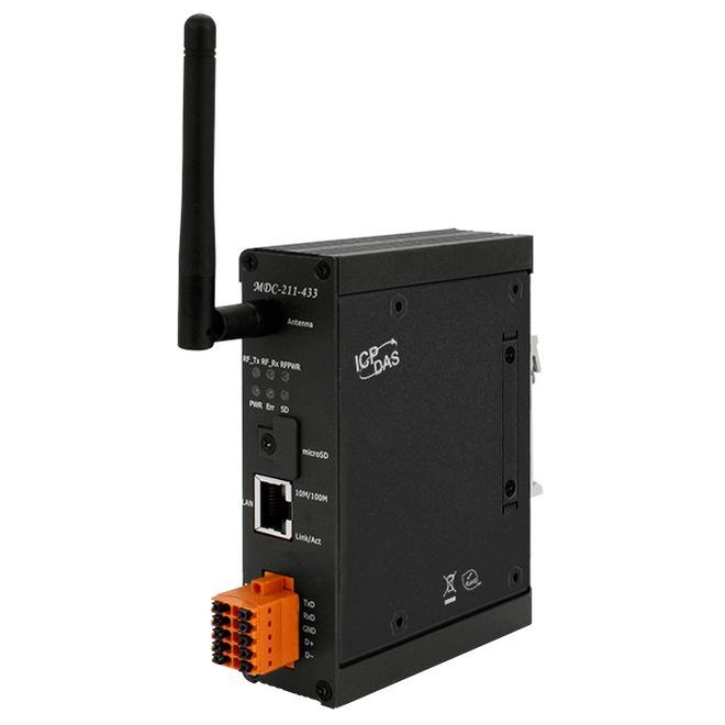 Шлюз Modbus TCP / функция концентратора данных / устройств Modbus RTU / 1xRS-485 / 1xRS-232 / 1xLAN / IEEE IEEE 802.15.4 / 10-30VDC-in / –25...+75°C / 19dBm / 79.43 мВт — ICP DAS MDC-211-433