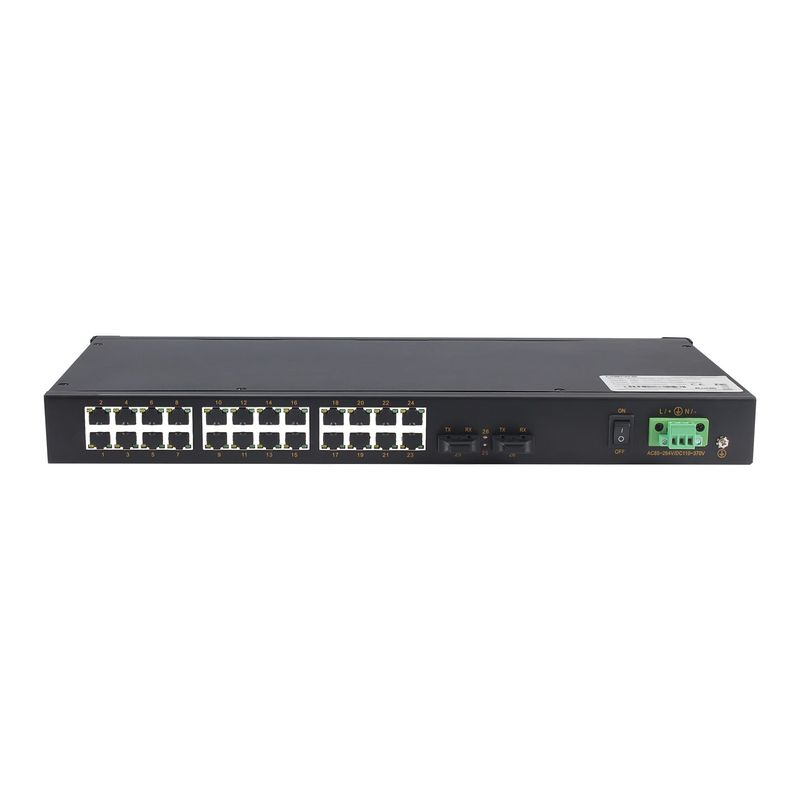 Неуправляемый коммутатор Layer 2 в стойку 19" / 2 порта 100M Fx / 24 порта 10/100M Tx / Multi-mode / ST разъем / 2км / вход питания 85-264VAC/110-370VDC / IP40 / –40...+85°C — Maiwe MIEN2026-2M-ST02-AD220