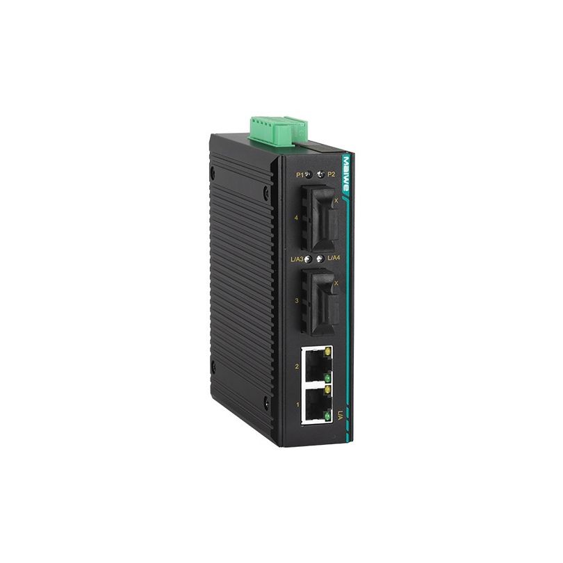 Компактный неуправляемый коммутатор Layer 2 на din-рейку / 2x100M оптоволокно / 2x10/100M RJ45 / Multi-mode / FC разъем / 2км / резервируемые входы питания 12-48VDC / IP40 / –40...+85°C — Maiwe MIEN2204-2M-FC02
