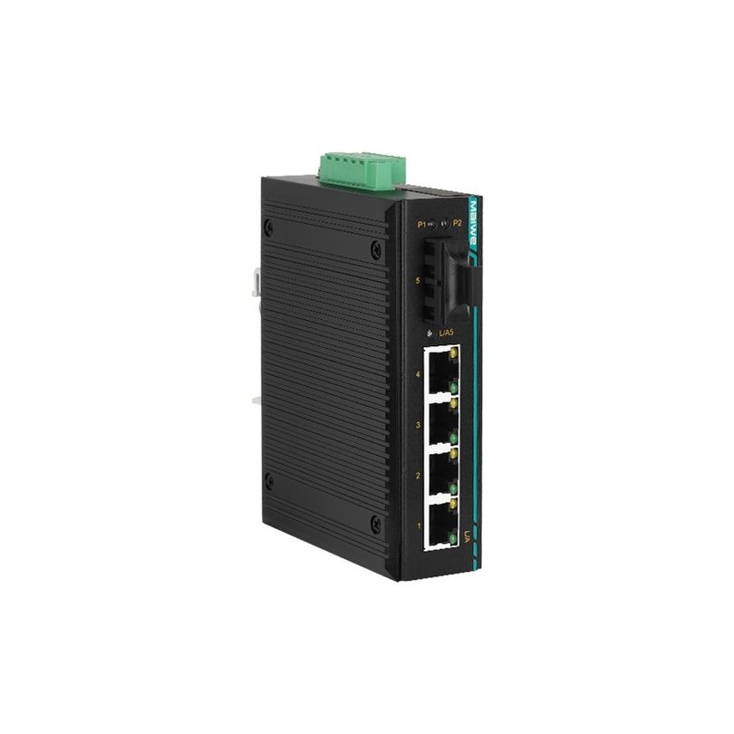 Компактный неуправляемый коммутатор Layer 2 на din-рейку / 1x100M оптоволокно / 4x10/100M RJ45 / Single-mode / FC / 20км / резервируемые входы питания 12-48VDC / IP40 / –40...+85°C — Maiwe MIEN2205-S-FC20