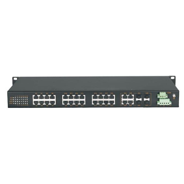 Неуправляемый коммутатор Layer 2 в стойку 19" / 4 порта Gigabit combo / 24 порта Gigabit Tx / резервируемые входы питания 85-264VAC/110-370VDC / IP40 / –40...+85°C — Maiwe MIEN3028G-4GC-24GT-2AD220