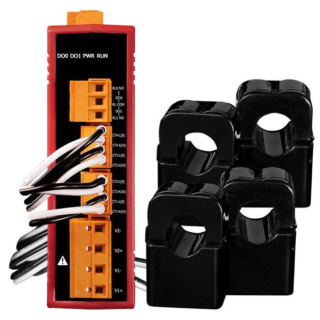 4-канальный / 1-фазный компактный измеритель напряжения и тока / CT: 4pcs / кабель 24мм (0-200A) / до 300 В / 50/60Гц / CANopen — ICP DAS PM-3114-240P-CPS