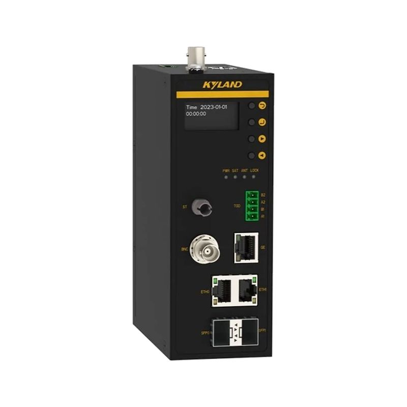 Сервер точного времени на din-рейку GPS/BDS/GLONASS / PTP/NTP/SNTP / TCXO / 2 SFP слота 100Base-X / 2x10/100Base-T (X) / 1x10/100/1000Base-T (X) RJ45 / один источник питания 85-264VAC/77-300VDC / –20...+70°C — Kyland PTS-DR200L-1111-HV