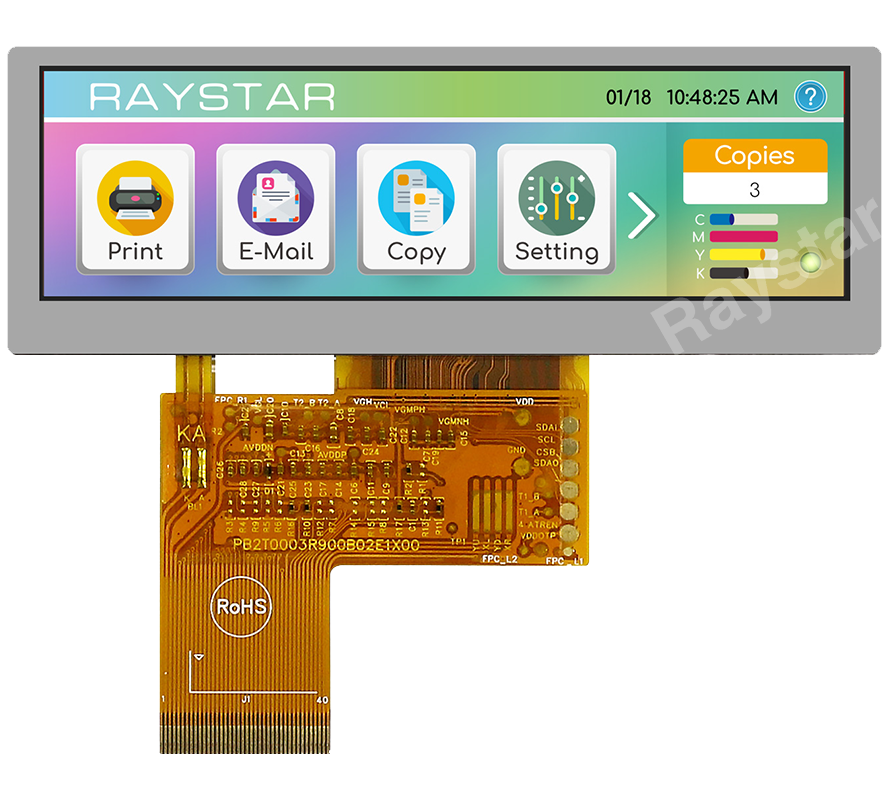Монитор TFT / 3,9" / 480x128 / Подсвет: LED / Разм: 105,5x37x3,05 мм — Raystar RFS390B-ALW-DNN