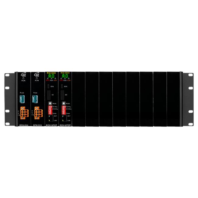 Корзина расширения / функция резервирования Ethernet / 8 слотов / 2 модуля питания RPM-D24 / 2 коммуникационных модуля RCM-ECAT / EtherCAT — ICP DAS RIO-9840