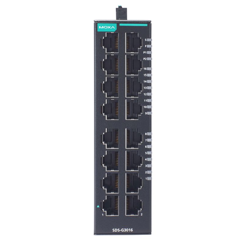 Промышленный 16-портовый коммутатор Ethernet / 16 портов 10/100/1000BaseT(X) RJ45 / выход реле 1A@24VDC / –10...+60°C / 9.6-60VDC-in — MOXA SDS-G3016