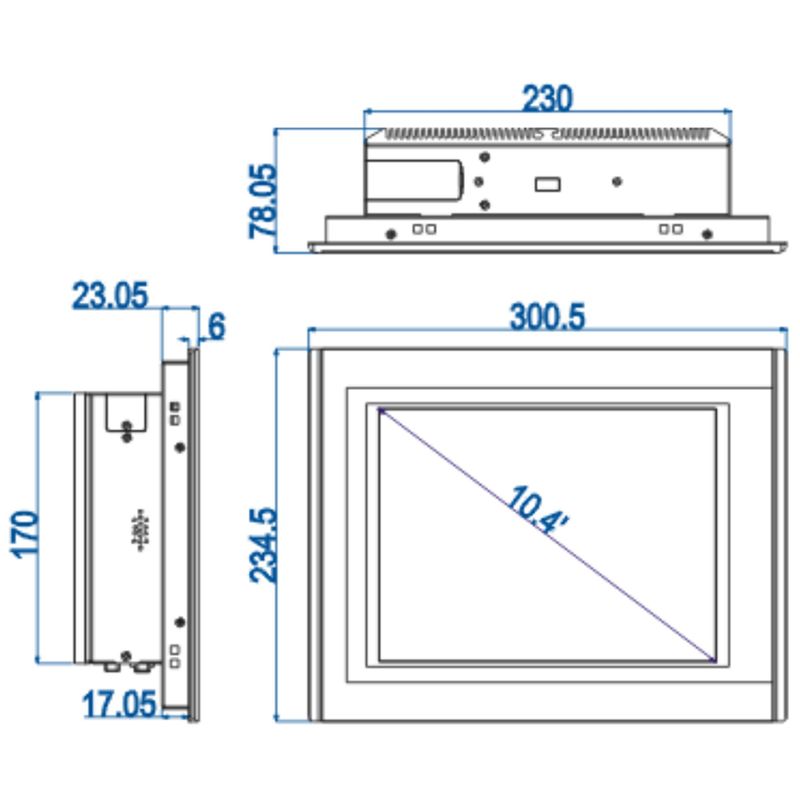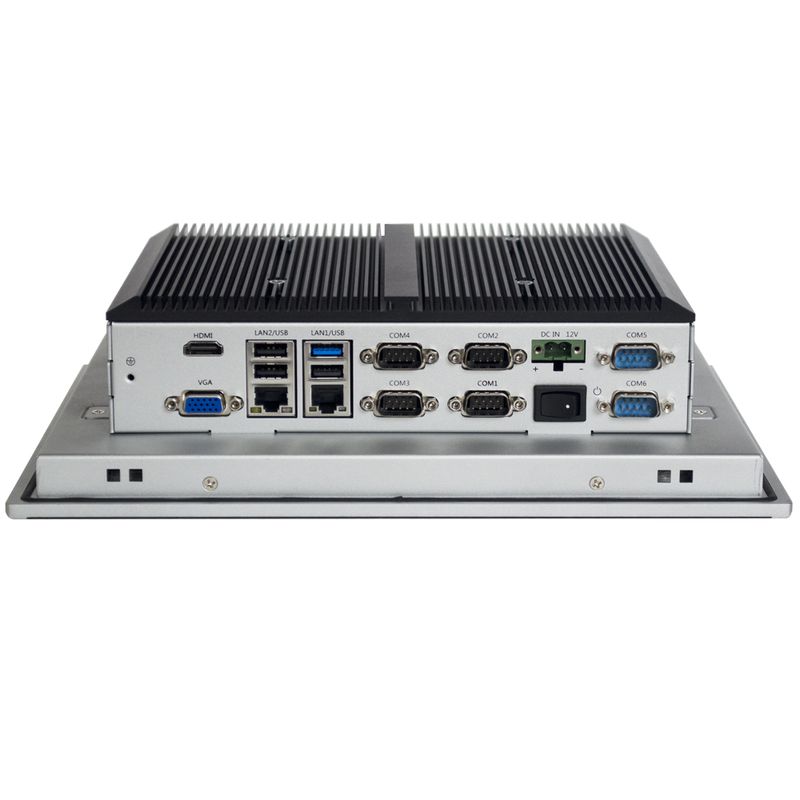 Промышленный панельный компьютер 10.4" / резистивный сенсорный экран TrueFlat / IP65 по передней панели / Intel Celeron J1900 2.0Ghz Quad Core CPU / 3х USB 2.0 / 1х USB 3.0 / 6хRS232 (1хRS485 опционально) / 2хGLAN / питание DC12V / Блок питания и крепление в панель в комплекте — NODKA TPC6000-A102-TB