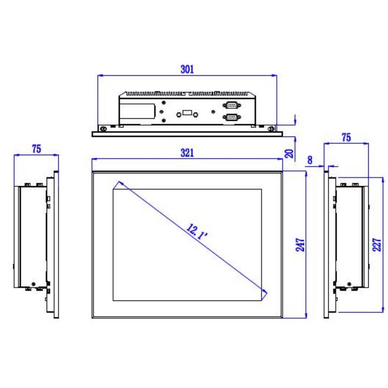 Промышленный панельный компьютер 12.1" / резистивный сенсорный экран TrueFlat / IP65 по передней панели / Intel Celeron J1900 2.0Ghz Quad Core CPU / 8GB DDR3 RAM+256GB mSATA SSD / 3х USB 2.0 / 1х USB 3.0 / 6хRS232 (1хRS485 опционально) / 2хGLAN / питание DC12V / Блок питания и крепление в панель в комплекте — NODKA TPC6000-D112-LH-8G-SS256G