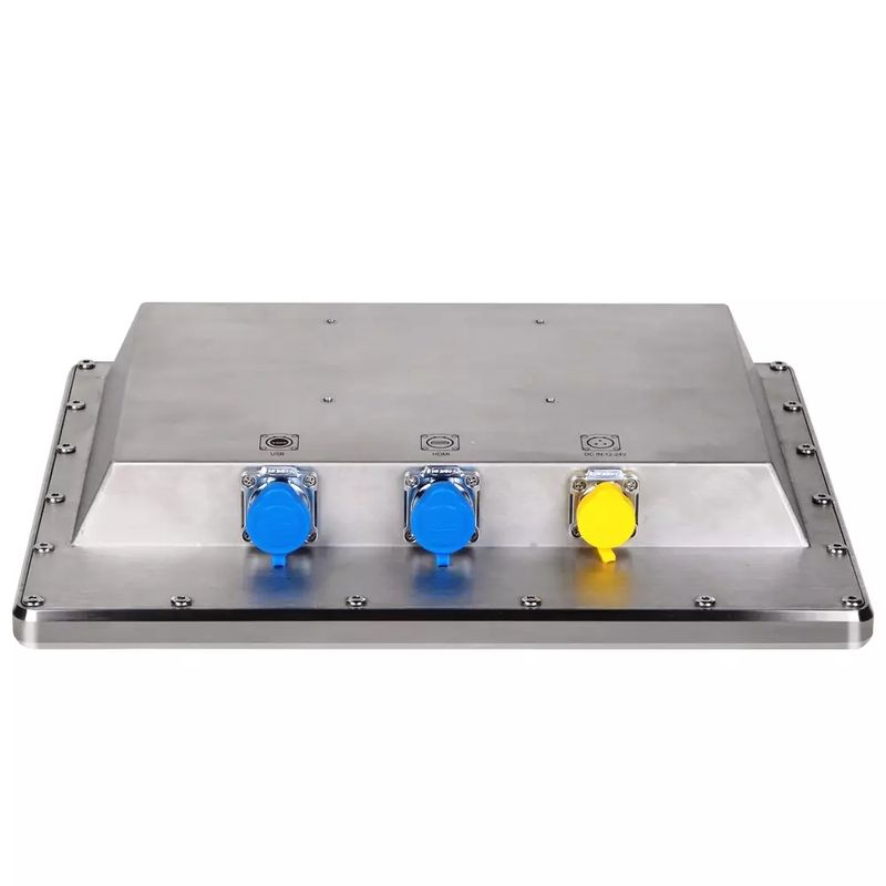 Промышленный полностью защищенный монитор 15" / емкостной сенсорный экран / 1024 x 768 / XGA TFT / 420nits / 8001 / IP69K / корпус из нержавеющей стали / разъемы M12 HDMI / USB / DC in / питание 12...24 В DC / кабели M12 и блок питания IP67 в комплекте Akit — NODKA WP1501P-C