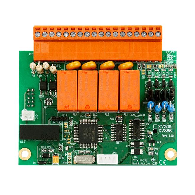 Плата ввода-вывода / 4 канала AI (+/–15V / +/–30V / +/–1V / +/–2.5V / +/–5V / +/–10V / +/–20mA / 0...20mA / 4...20mA) / 4 канала DI (3.5...50VDC) / 4 выхода реле (6A@35VDC / 6A@240VAC) / 5VDC-in — ICP DAS XV386