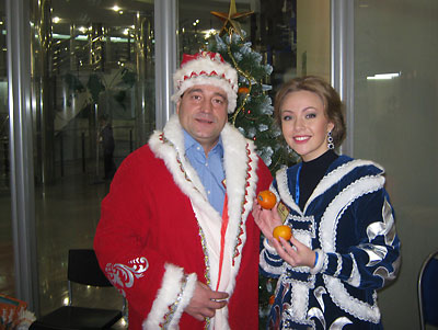 Чтобы подчеркнуть высокую степень защиты оборудования от уральского холода и непогоды, компания АВЕОН пригласила на свой стенд Деда Мороза и Снегурочку. Ну и, конечно же, не обошлось без новогодней елки, мандаринов и подарков.