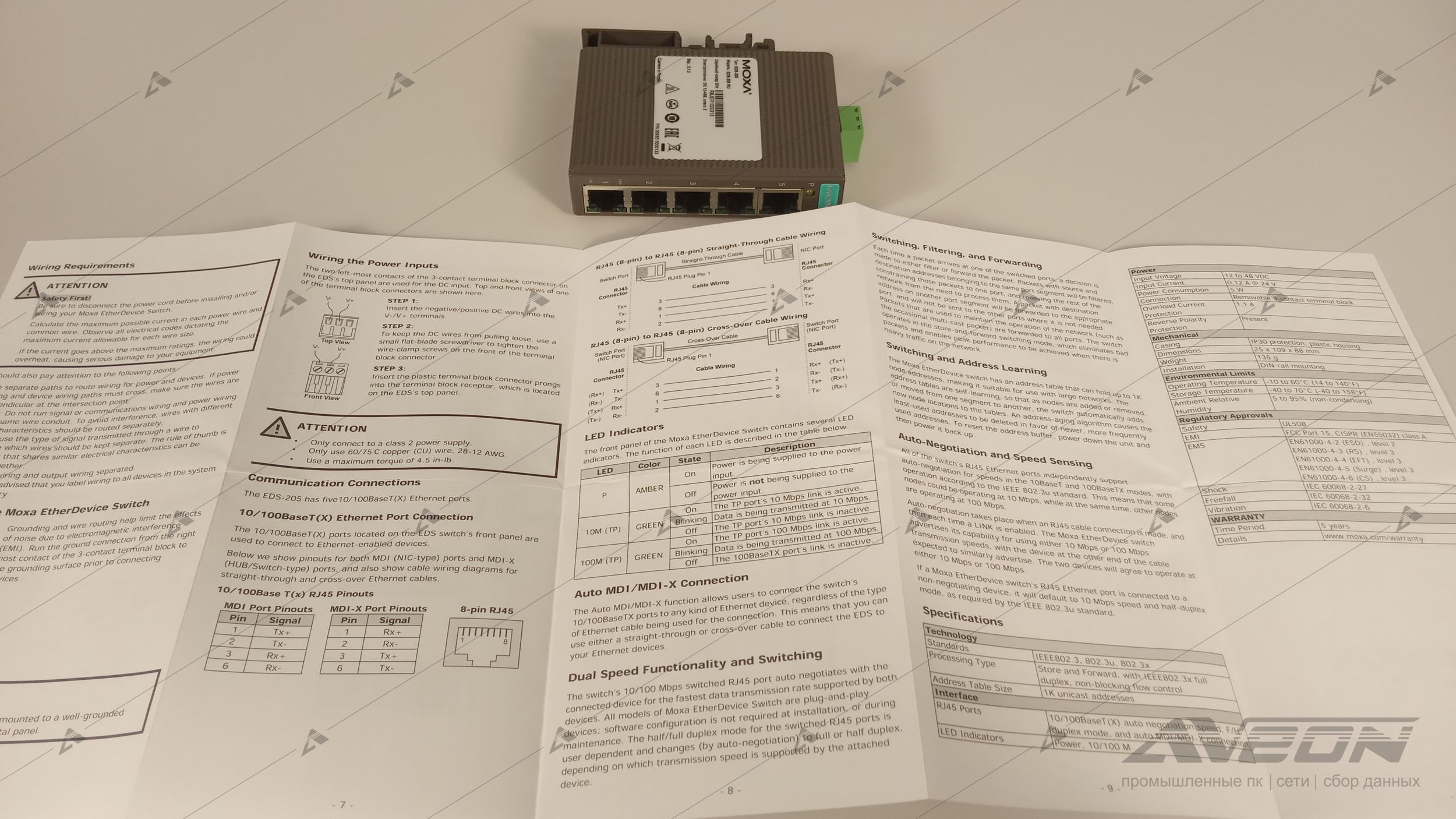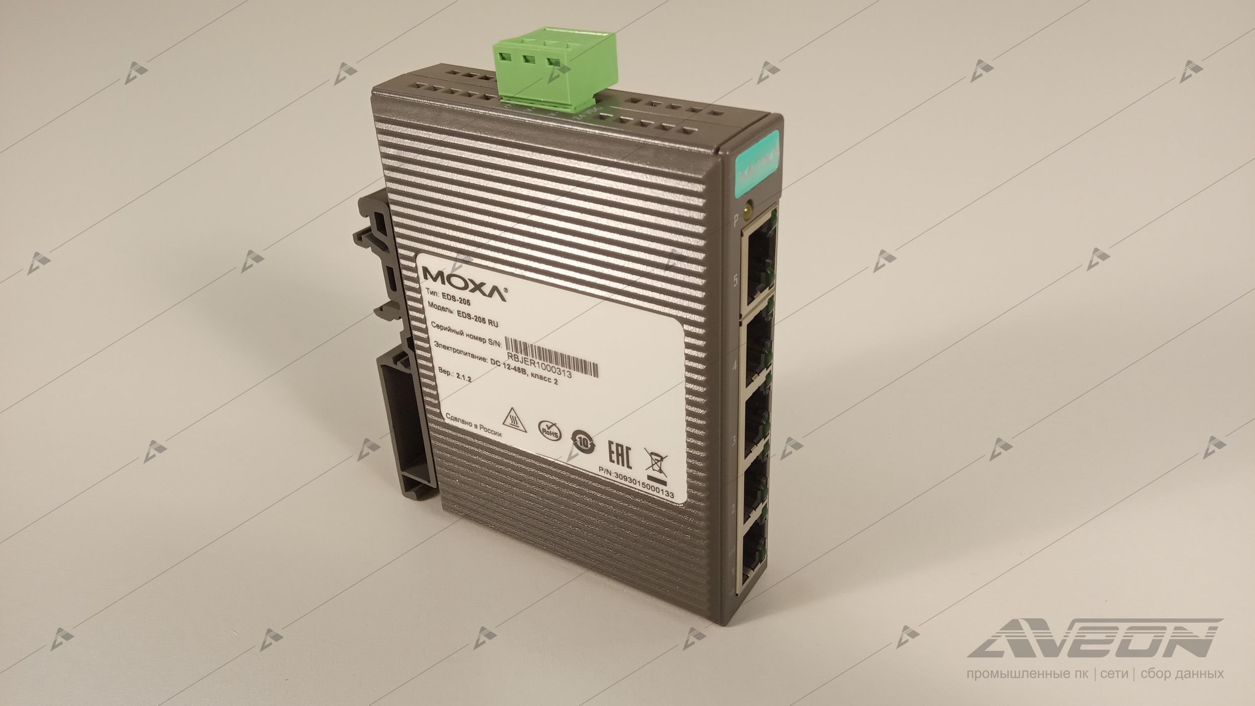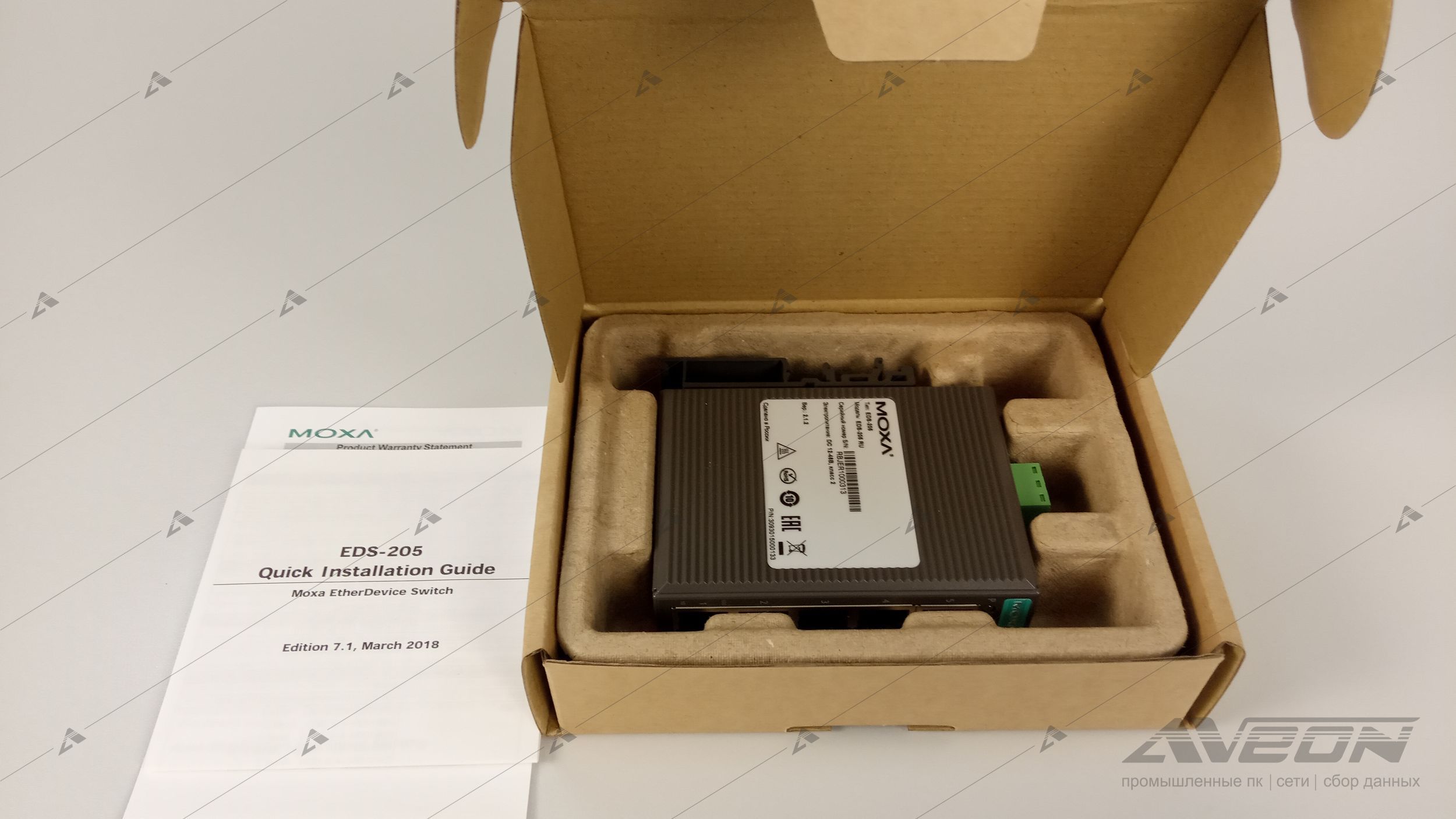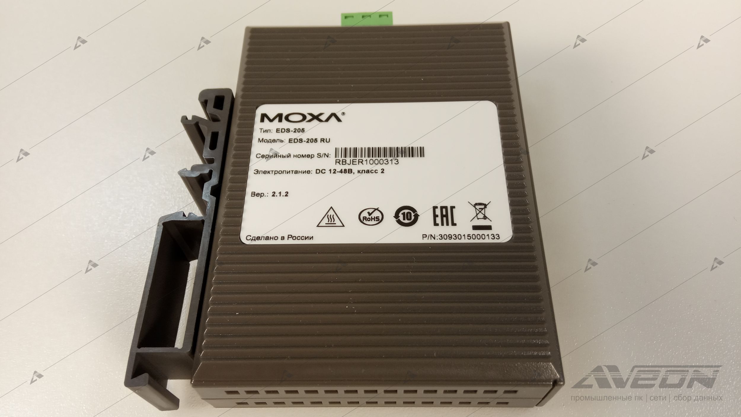 Представляем фотораспаковку компактного 5-портового неуправляемого коммутатора 10/100 BaseT(X) Ethernet MOXA EDS-205.