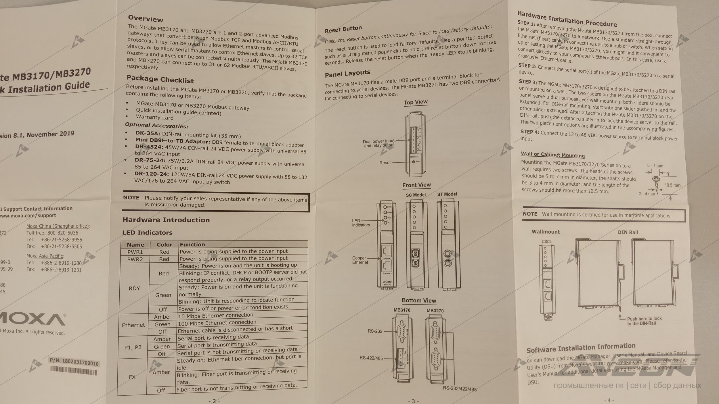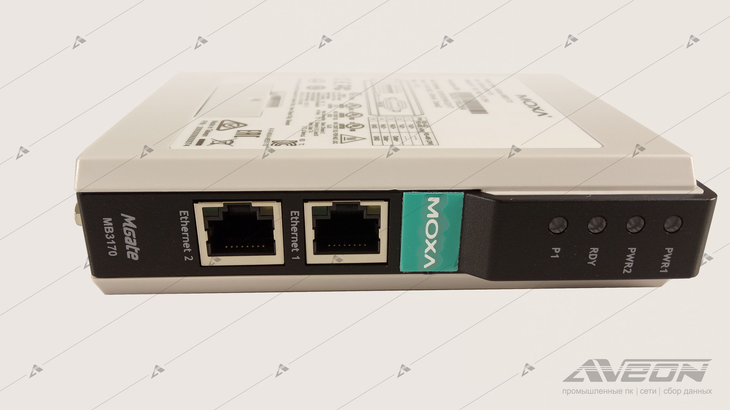 Представляем фотораспаковку — 1-портовый преобразователь Modbus RTU/ASCII (1 x RS-232/422/485) в Modbus TCP (2 x Ethernet, 1 IP-адрес), монтаж на DIN-рейку MOXA MGate MB3170.